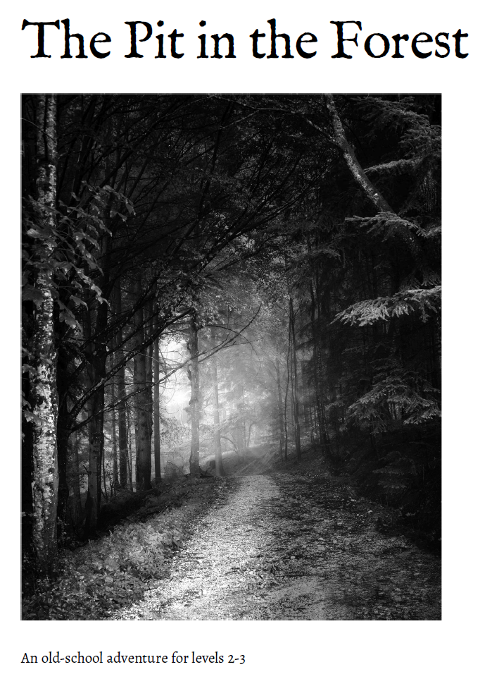 I’ve just published my first actual adventure module — The Pit in the Forest. It’s currently $2 $3 on DTRPG.